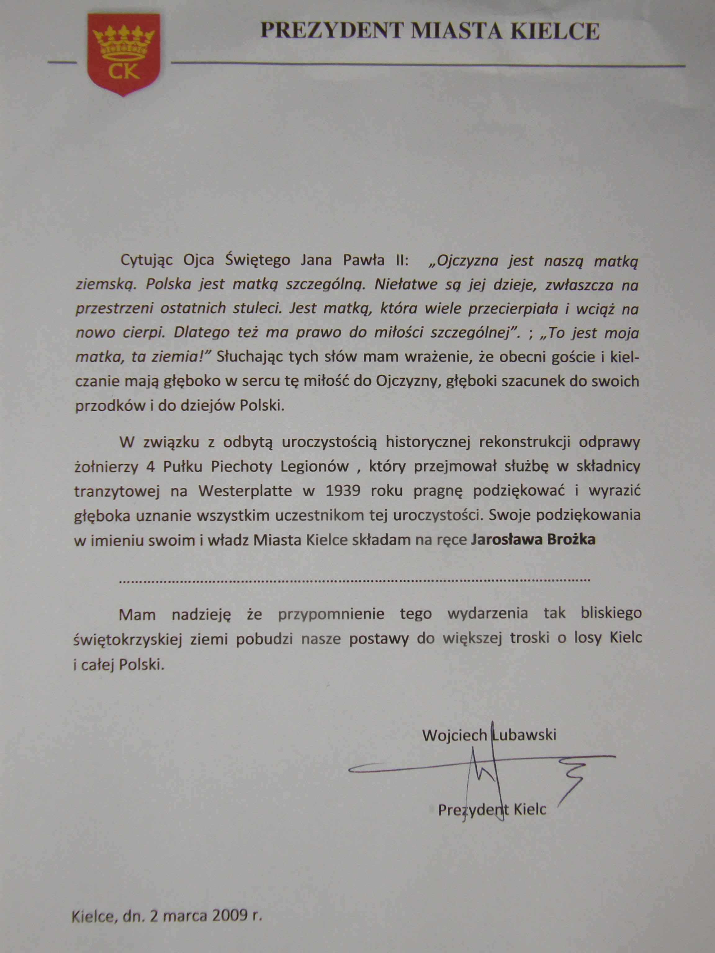 Sformowany pluton przemaszerował ulicami Kielc pod pomnik 4 PPLeg., także zrekonstruowany na podstawie przedwojennego oryginału. Dwójka strzelców z "Siedemnastego" miała w tym czasie zaszczyt wystawić wraz z żołnierzami z Bukówki posterunek przy owym pomniku, a wcześniej pełnić honorową wartę przy grobie st. leg. Józefa Paszkowskiego, który walczył w trakcie obrony Składnicy na placówce "Przystań".