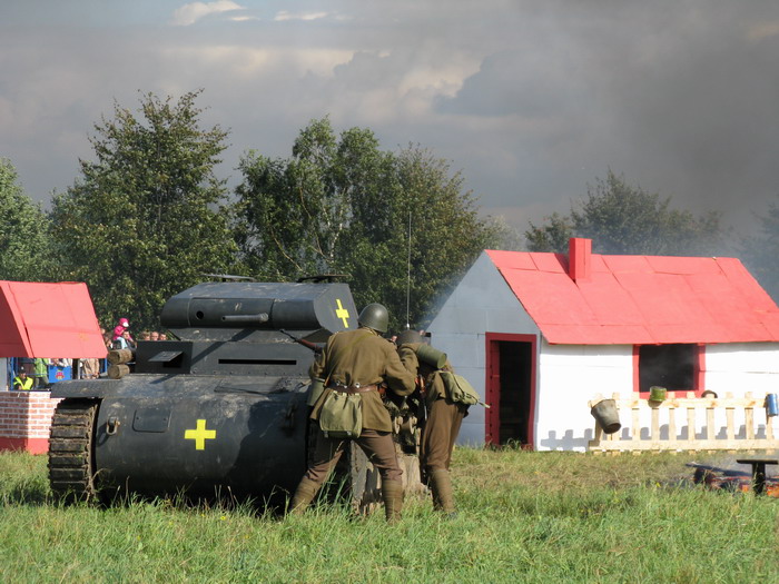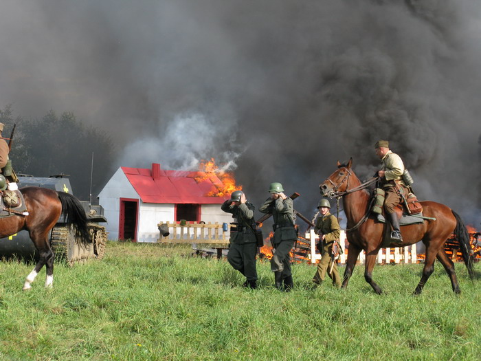 Inscenizacja przedstawiała walki, jakie toczyła o Bochnię Grupa Operacyjna Boruta gen. Mieczysława Boruty-Spiechowicza, które miały miejsce w dn. 6.09.1939. Na początku do miasta wkroczył oddział Wojska Polskiego, dowodzony przez plut. pchor. Piotra Skupnia, w którego skład weszli członkowie GRH GO i GRH Siedemnasty. lązacy zajęli pozycje na skraju zabudowań, a Siedemnastacy obsadzili armatkę plot. Nastąpił czas nerwowego oczekiwania na przeciwnika, który bardzo gwałtownie przerwał ryk syreny na niebie pojawił się wrogi samolot. Mimo zaciętego ostrzału z Boforsa zdołał on zrzucić bomby i zniszczyć część zabudowań. Wkrótce potem rozpoczął natarcie oddział niemieckiej piechoty wsparty czołgiem Pzkpfw II. Dodatkowo polskie pozycje zostały obłożone silnym ogniem artyleryjskim. Polacy musieli opuścić zabudowania i wycofać się na główne pozycje obronne. Znaczenie tej miejscowości było jednak tak duże, że oddziały strzelców podhalańskich i Obrony Narodowej, które nie brały dotąd udziału w walce, wsparte przez kawalerię, samochód pancerny wz.34, tankietkę TK-3, armatę 75mm oraz moździerz 81mm obsługiwany przez Siedemnastaków, wykonały kontratak. Kawalerzystom udało się zniszczyć wrogi czołg przy pomocy karabinu ppanc. wz.35 Ur, a piechota wyparła Niemców z płonących zabudowań. Wzięto przy tym licznych jeńców. Niestety, w wyniku niekorzystnej ogólnej sytuacji na froncie, oddziały Grupy Operacyjnej Boruta musiały wykonać odskok na wschód. Potem czekały je jeszcze liczne walki odwrotowe, które zakończyły dopiero pod koniec września bohaterskim bojem pod Tomaszowem Lubelskim