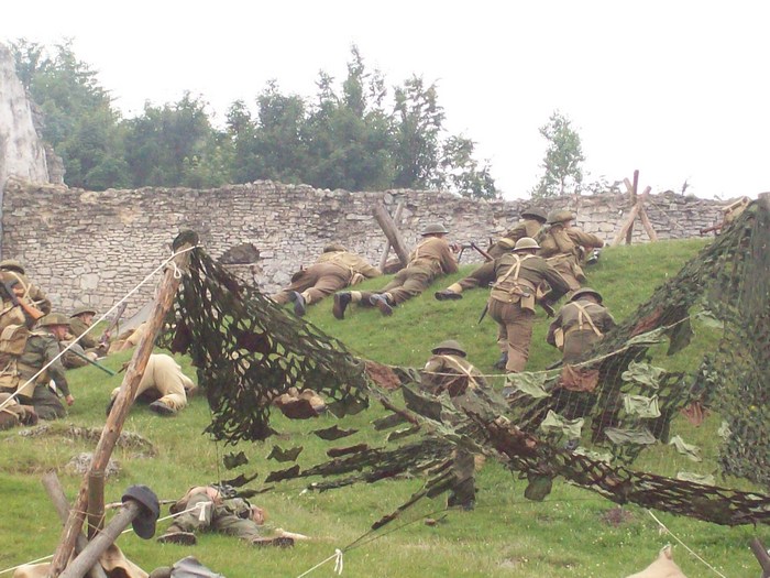Monte Cassino - Ogrodzieniec 24.07.201124 lipca 2011 GRH Siedemnasty wziął udział w inscenizacji walk o Monte Cassino, jaka od kilku lat regularnie odbywa się w ruinach zamku w Ogrodzieńcu. Inscenizacja bitwy była zwieńczeniem trzydniowej imprezy, w trakcie której szereg grup zaprezentowało swój sprzęt i umiejętności. Siedemnastacy, tym razem jako "Żubry" (nominalnie 17 LBS) swoim skromnym, trzyosobowym oddziałkiem wsparli jedną z drużyn szturmowych, jakie sformowano w ramach scenariusza bitwy.