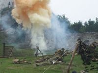Zanim jednak doszło do "starcia" z obrońcami ruin klasztoru, mieliśmy okazję gościć w imponującym obozie rekonstruktorów 2 Korpusu Polskiego. W tym roku istotnie można było nacieszyć oczy ilością i jakością zgromadzonego wyposażenia przez naszych gościnnych gospodarzy. Rozległy, przesycony wręcz epokowym wyposażeniem teren obozu dawał doskonałą iluzję tamtych czasów, zwłaszcza, że gospodarze troskliwie unikali wszelkich "współczesności" – nie sposób było uświadczyć plastikowych butelek, foliówek itp. Podobnie troskliwie i pomysłowo opracowany został scenariusz inscenizacji bitwy: uniknięto uproszczeń, dłużyzn, zaś nieuniknione umowności scenariusza i tak pozwalały, naszym zdaniem, zrozumieć istotę cassińskich walk: przemieszanie oddziałów, wielokierunkowe natarcia i obrony pojedynczych obiektów, ciągły kontredans ataków i kontrataków. "Żubry" rzucone zostały do drugiego ataku, po załamaniu się i rozbiciu pierwszej drużyny atakujących Polaków. Także atak drużyny, którą wspieraliśmy, zakończył się tylko połowicznym sukcesem – nawet po zdławieniu oporu wysuniętego i wczepionego w skały stanowiska niemieckiej broni maszynowej, druga drużyna poniosła olbrzymie straty po niespodziewanym kontrataku spadochroniarzy i strzelców górskich. Skonsolidowanym w dalszym ataku resztkom przetrzebionych drużyn brakło już mocy, by przełamać uporczywą obronę grzbietu i mostu. Szczególnie dawały się we znaki obsługiwane przez "Niemców" z determinacją i pod silnym ogniem moździerze, "uciszone" dopiero zuchwałym manewrem polskich komandosów. Tylko nieliczni z atakujących frontalnie drużyn mogli cieszyć się z ostatecznego opanowania klasztoru... na szczęście wszystkich, także poległych, poderwała do wspólnej prezentacji po skończonej bitwie odtworzona z głośników pieśń o czerwonych makach...